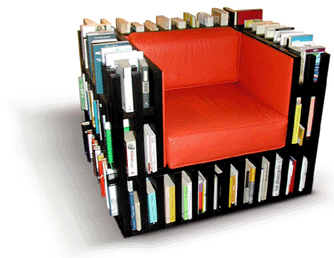 書架?椅子? 坐在這樣一把奇特的椅子上,是不是有一種坐在書堆裡的感覺?這個可爱的家伙容量可不小哦,雖然取代不了大書櫃的地位,但是起码可以做一回你的“每月最熱門”書刊的集散地。 文章出自於:ixinqi.com